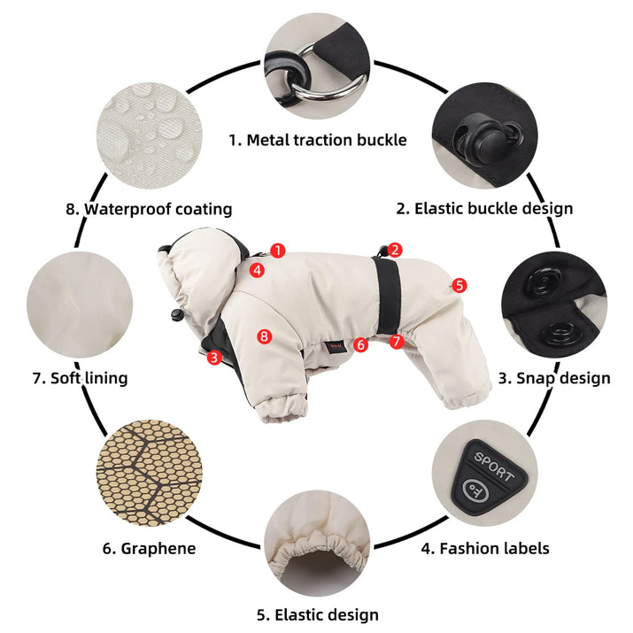 Paw Élégance – Waterproof Reflective Winter Coat with Hood
